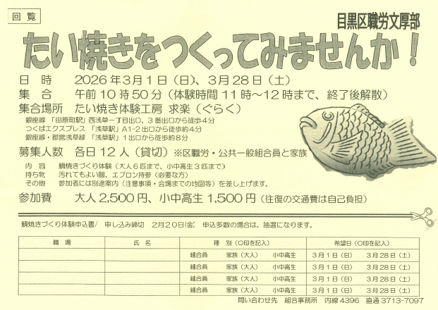 【2/20締切】文厚部 たいやきづくり
