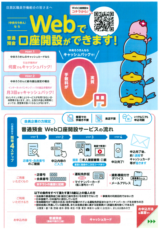 web開設のほか申込用紙(組合事務所でお渡しできます)でのお手続きも可能です。