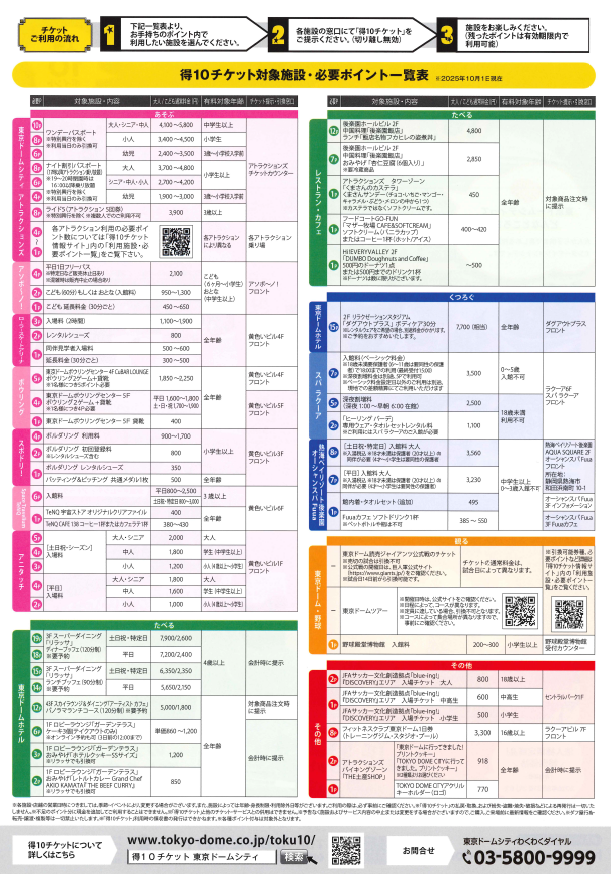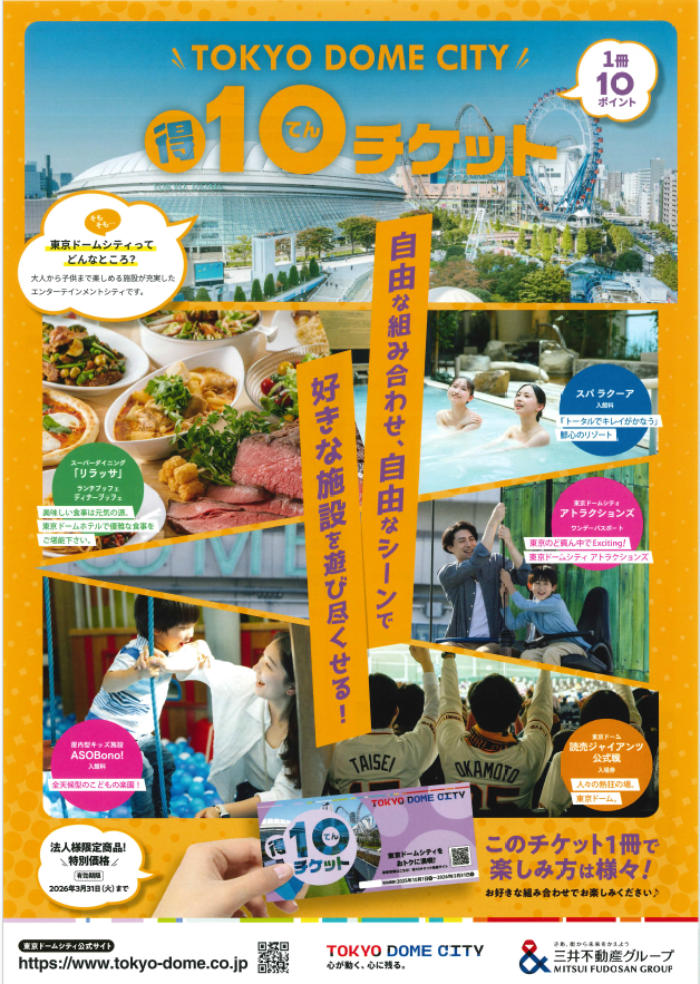 東京ドームシティ 得10チケット 組合事務所で販売中