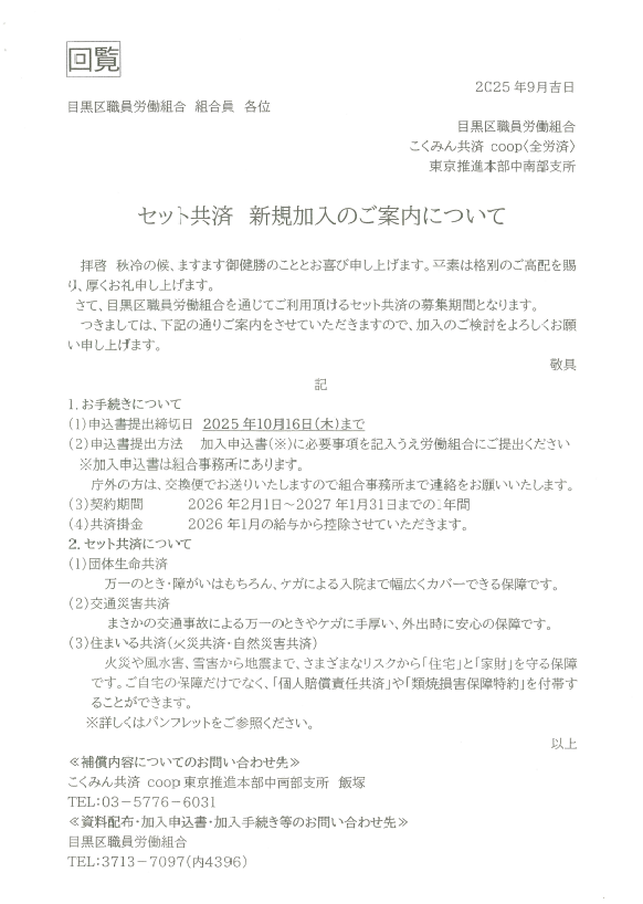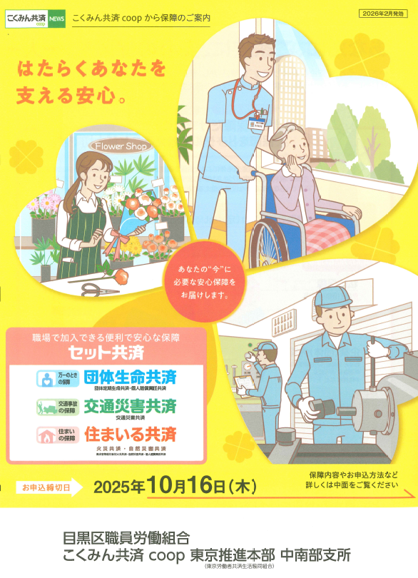 (10/16まで)全労済こくみん共済 セット共済新規加入のご案内
